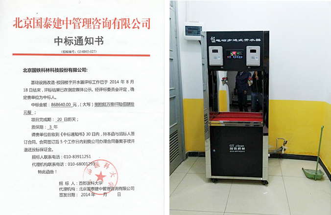 我公司于2014年在首都醫(yī)科大學(xué)校園樓宇開(kāi)水器招標(biāo)項(xiàng)目中,經(jīng)項(xiàng)目評(píng)標(biāo)小組評(píng)審,確定為中標(biāo)單位。