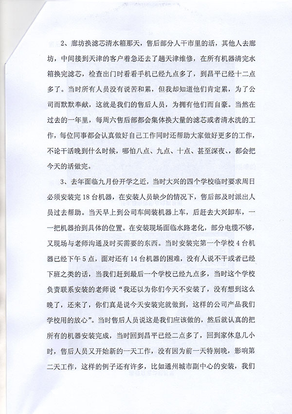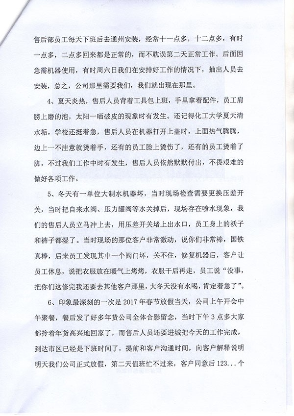 公司李秀田董事長對售后部的工作總結給出高度贊賞,并做出回復:你們的總結寫的很好。你們真正做到了工作第一、客戶至上,樁樁事跡感人肺腑。你們用實際行動詮釋了客戶的聲聲贊許,為公司帶來眾多的回頭客戶。望繼續(xù)努力,再創(chuàng)輝煌!向你們致敬!