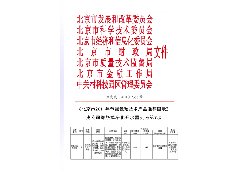 北京市2011年節(jié)能低碳技術(shù)產(chǎn)品推薦目錄